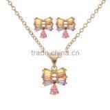 Lovely Candys Colorful Zircon Bowknot Pendant Jewelry Set FQ-J42