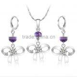 Amethyst Bowknot 925 Silver Pendant and Earrings Set FQ-J44