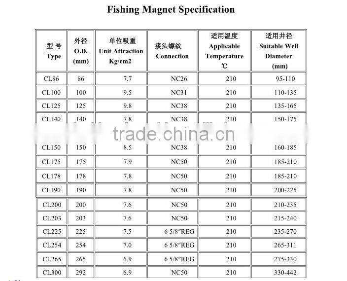 The Fishing Magnets are used to retrieve all types of small objects having magnetic attraction from bore hole bottoms .Such undrillable objects cones,bearings,slips,tong pins and milling cuttings can often be retrieved only by magnetic attraction .So that keeping the bore bottom is clean.