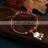 Cheap Personalized Silver Plated Bell Red Jade Beads Anklet