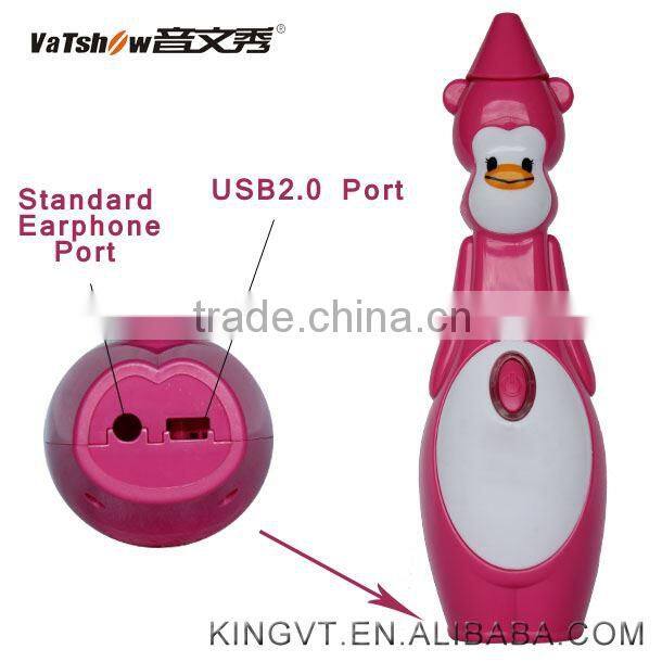 7. USB: use standard USB connect to computer, can recharge the battery, or download new stories or music to VaTshow Reading Pen