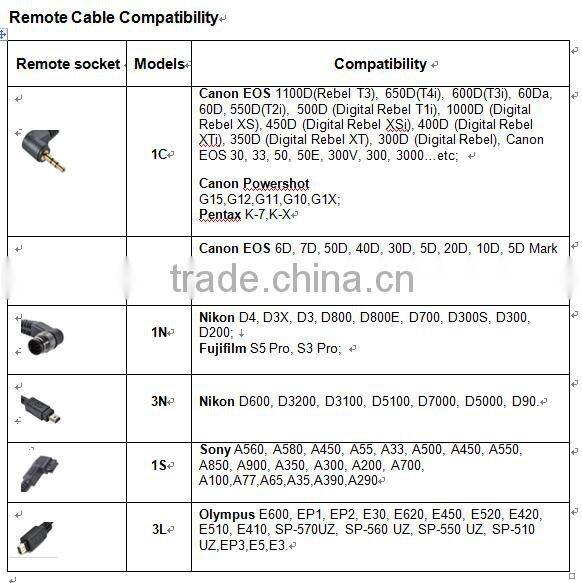 2. Different mode camera remote: single/continuous/Bulb, wired or wireless.