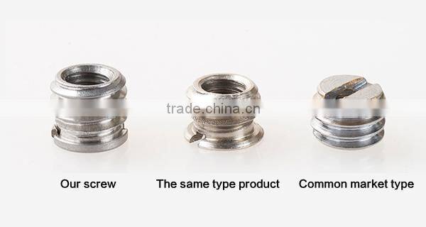 The base of screw is the standard UNC 3/8 size of female thread (can be joined with camera or Ball-head), be able to be connected to the UNC 1/4 " ‘Ball head’ or ‘Quick release plate’. For example during the practice: if the bottom of the screw hole of your camera is 3/8 inch, but the matched Ball-head or Quick release plate comes with 1/4 inch screw, then you can easily solve your trouble by using this adapter.