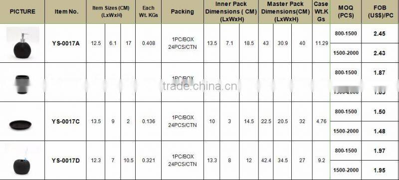 Product name: Black Polyresin sandstone bathroom accessories set for hotel and home