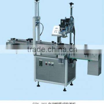 This capping machine from GUANGZHOU SIPUXIN COMPANY features electrical control movement and strong stability. With positioning devices, the standard capping is easy to operate, and it is suitable for caps of different shapes and sizes; It resolves the problems on nozzle, pump head, spray pumps, spray gun, etc. Lock lid with adjustable speed can be adjusted according to different tightness.