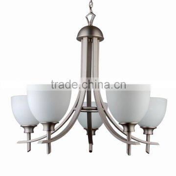 Home > Lights & Lighting > Lighting Decoration > Chandelier > 5 Light Chandelier(Lustre/La Arana) in Classic Brushed Steel Finish With Five Modern White Glass Shades