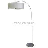 Floor Lamp(Lampadaire/Una Lampara) in Satin Steel Finish With 16" White Decadance Fabric Lamp Shade