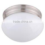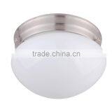 1 Light Ceiling Flushmount Light(Lampara de Techo) in Satin Steel Finish With 8" White Glass Bowl
