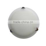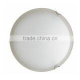 1 Light Ceiling Flushmount Light(Lampara de Techo) in Satin Steel Clips Finish With a 9" White Glass Shade