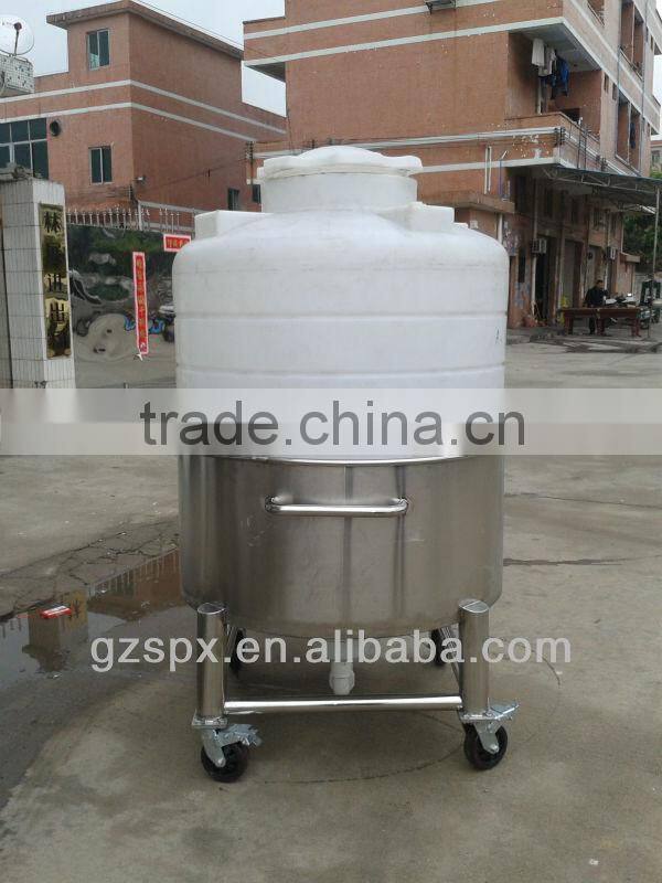 1.The stainless steel storage tank from GUANZHOUSIPUXIN company is made of imported 316L stainless steel , single layer 3mm , at the bottom equiped with 3 omni-directional wheels , it is convenient , with compact structure , nice appearance .