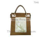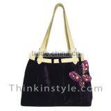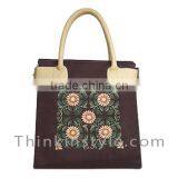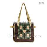 Hand Emrboidered on Canvas Fabric Bag With Leather Handle T542