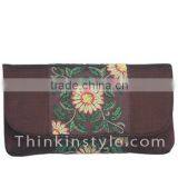 Embroidery Silk and Leather Clutch