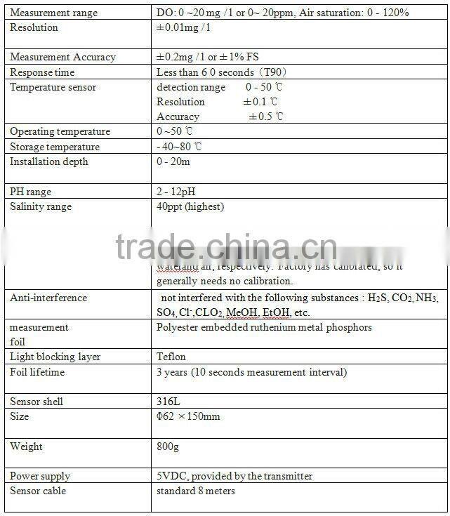 FDO-99 dissolved oxygen analyzer for waste water treatment is the product which is specially designed for the water environment monitoring and sewage treatment. It adopts the advanced fluorescence quenching principle and accurate phrase detection technology and innovative packaging process, which makes its reliability and service life leading the rival product greatly. Its unique characteristics of long-term low drift and maintenance-free make the product surpass and take the place of traditional membrane electrode completely.