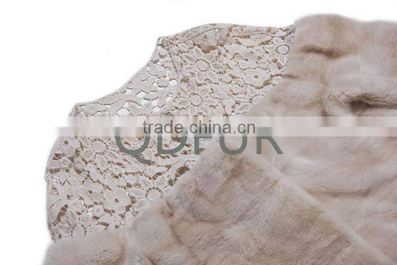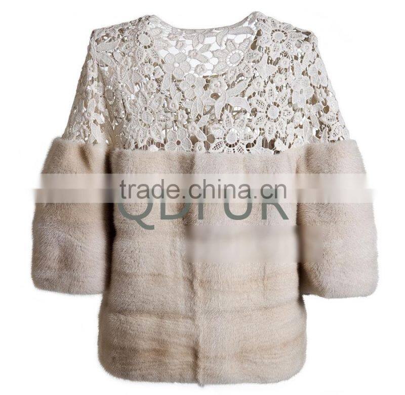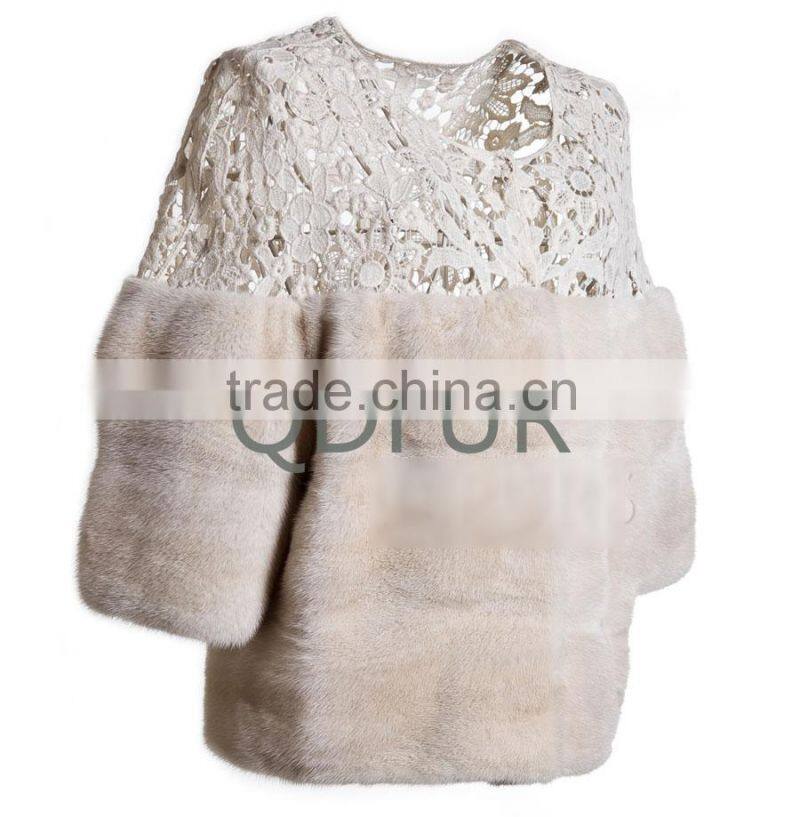 QD80815 Ladies Winter Denmark Pelt Mink Fur Lace Shoulder Jacket With Half Sleeves