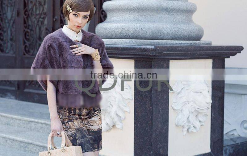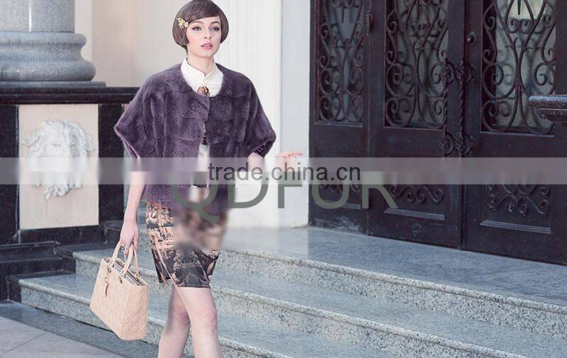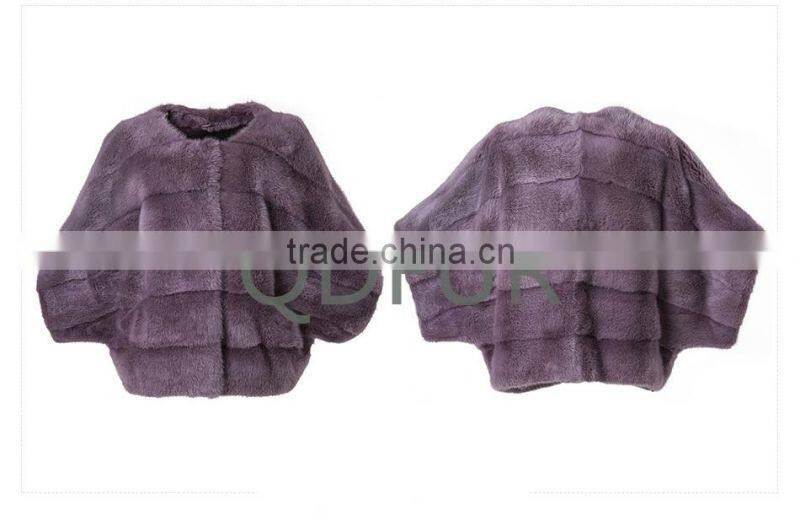 QD80749 Ladies Winter Natural Pelt Denmark Mink Fur Batwing Sleeves Jacket