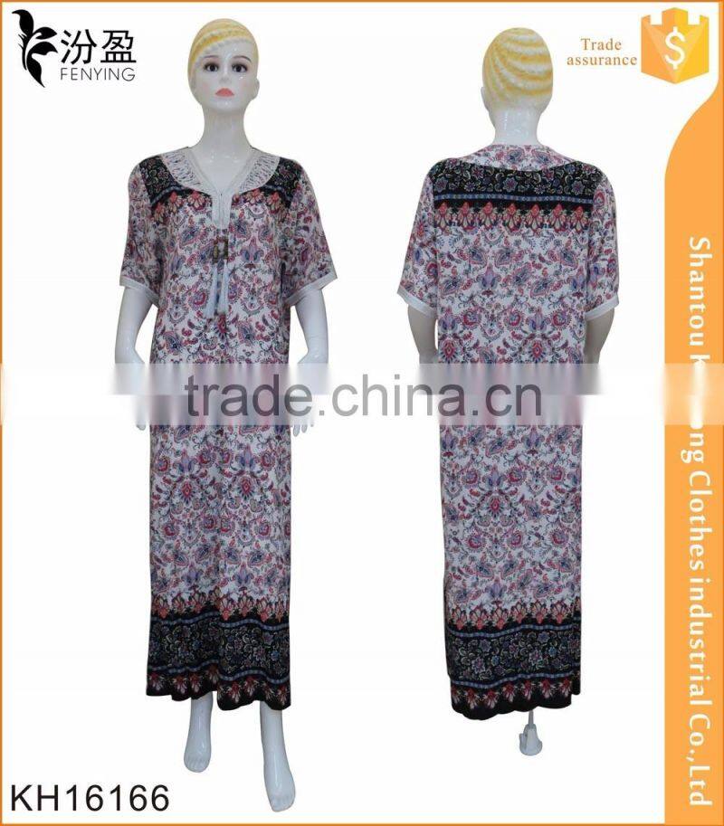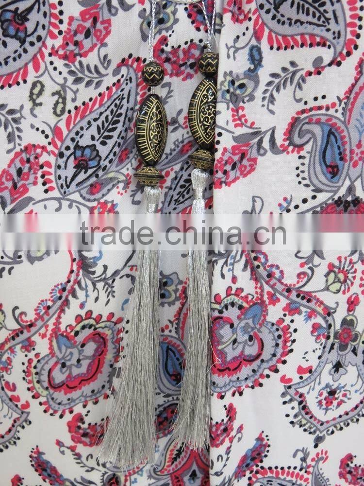 100% rayon top fashion traditional print muslim abaya with beads