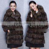 QD23550 Winter Women Mid-long Sable Coat With Polo Collar