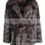 QD80773 Ladies Luxurious Natural Russian Sable Coat With Belt