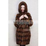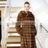QD80695 Ladies Lovely Luxurious Russian Royal Sable Fur Overcoat With Hoodied