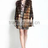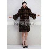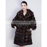 QD80635 Women Luxurious Polo Collar Long Design 3/4 Sleeves Russian Pelt Sable Coat