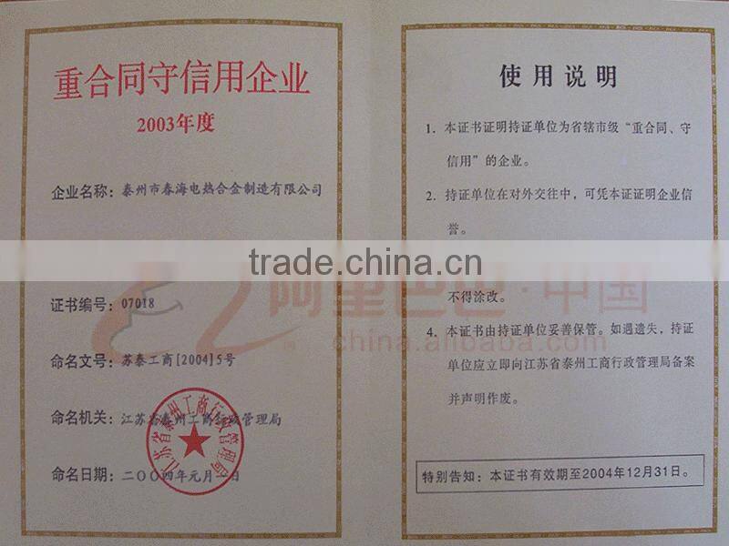 We have been devoted to scientific development and self-creation for over 20 years.Integrating with smelting,hot rolling,drawing,heat treatment and complete flaw detection ensures the quality of our products.With the help of senior engineer and researchers,we successfully made out continuous new mterials and products about electrothermal alloy and sails them all over the country .Our products deeply get the confidence of foreigners.