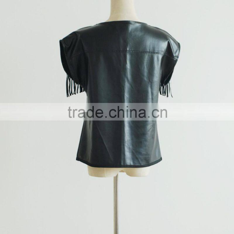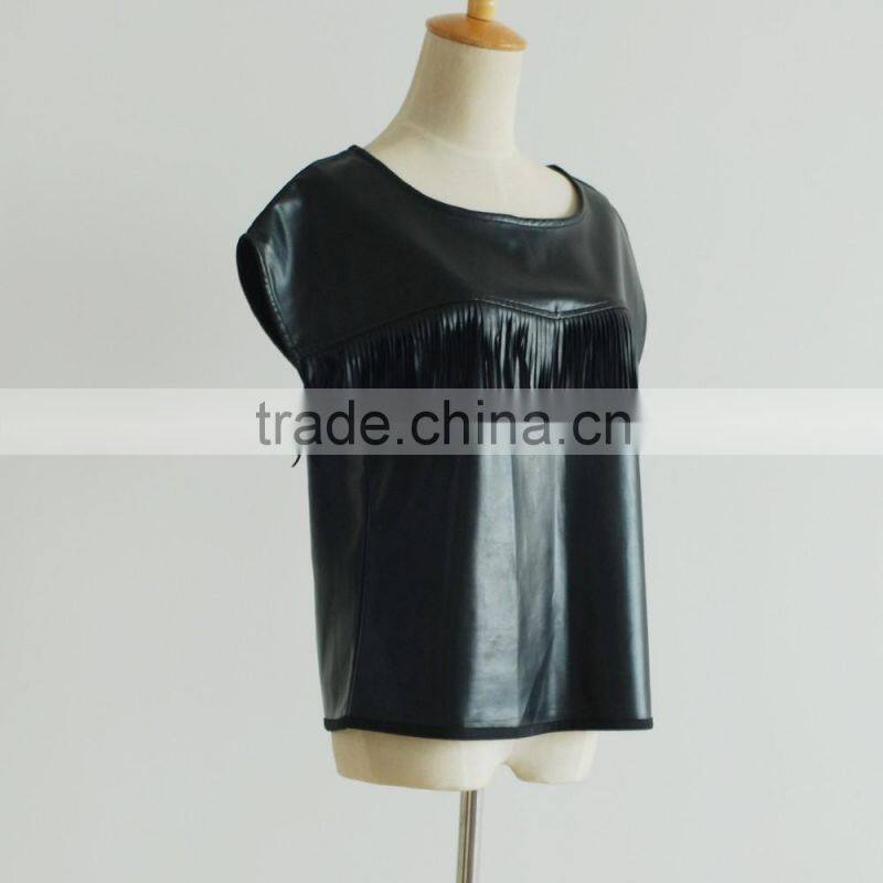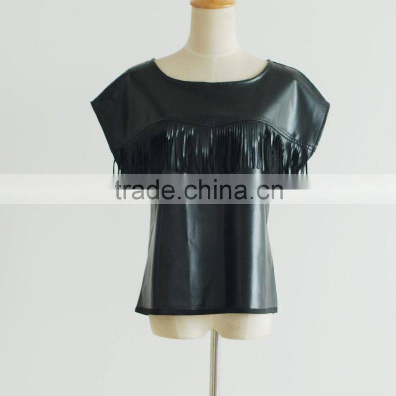 Side of wholesale korean style tassel leather ladies smart tops crop tops