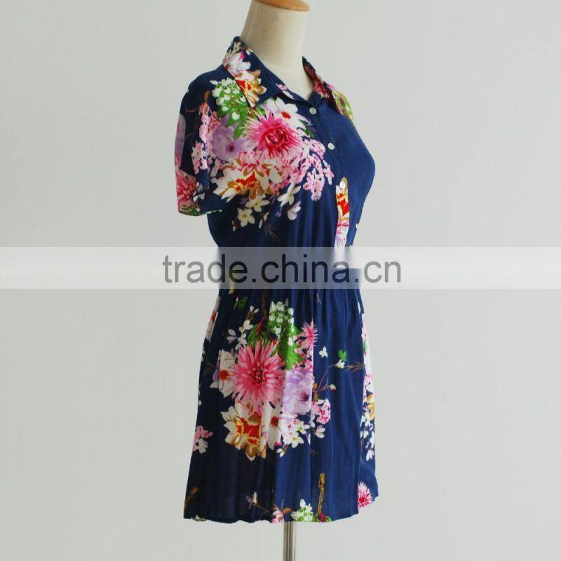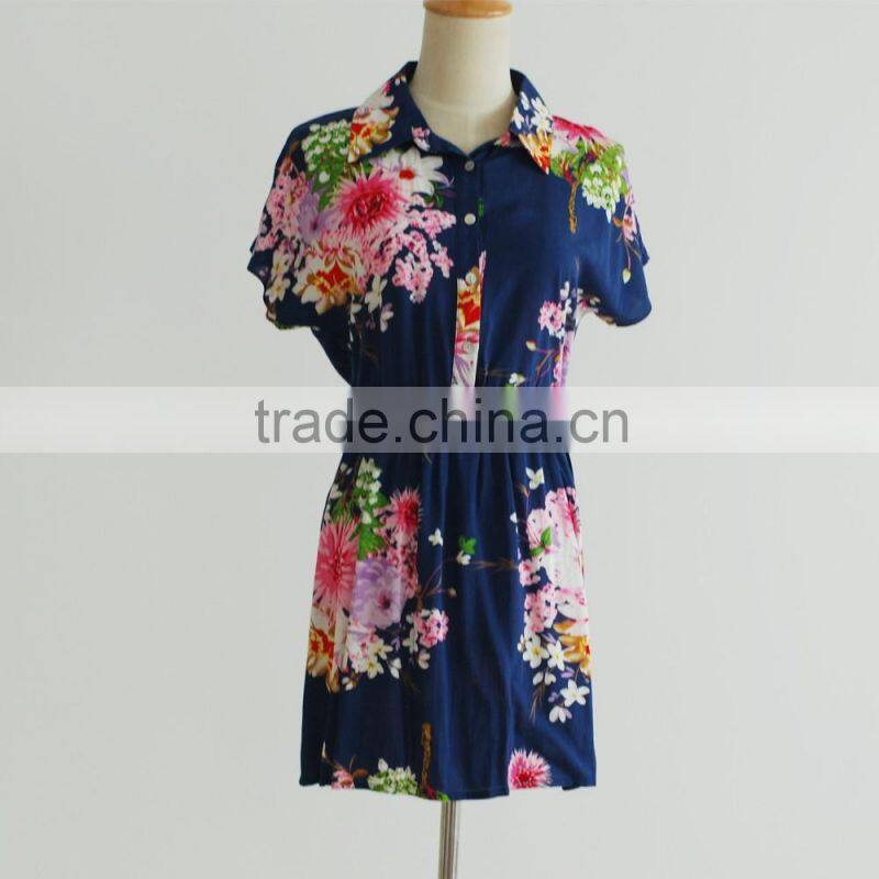 Side of Guangzhou factory flower printing summer women's shirt dress for mature woman