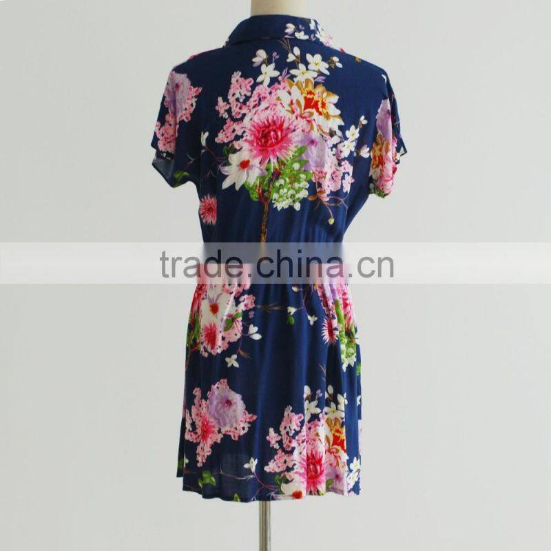 Front of Guangzhou factory flower printing summer women's shirt dress for mature woman
