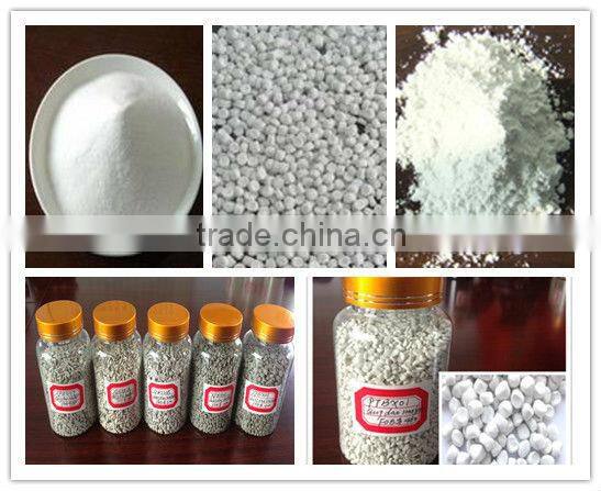 4.This masterbatch has small proportion and great tensile strength, increasing the dimensional stability ofinjection molding products,reducing the cost of fabrication. 5. they also have good whiteness and high brightness. |
