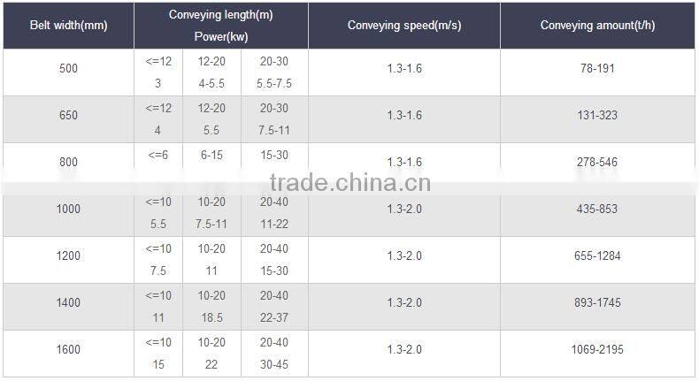 The Belt conveyor manufactured by our company has the advantages of big conveying capacity, simple structure, convenient repair and standard parts, so it is widely used in the industries of mine, metallurgy and coal to convey loose materials and finished products.The working temperature is from -20℃ to +40℃ and the temperature of conveying material is under 50℃.
