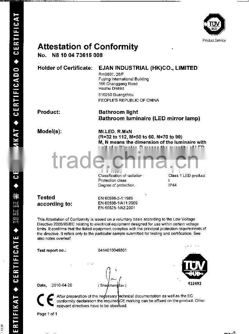 China bathroom accessory IP44 battery led light bathroom mirror Certifications