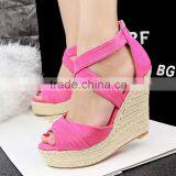 Big Size China Wholesale Cheap Price Hot Sale Fashion Newest Peep Toe High Heel Woman Roman Wedge Sandals 2016