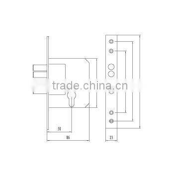 High Security Standard Aluminum Sliding Mortise Lock Body for PVC Door