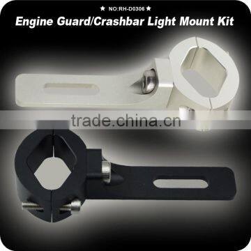 This Engine Guard/Crashbar Light Mount Kit allows fitment of any LED Lights to engine guards, crashbars, or any tube 24mm-35mm in diameter. These light mounts have a unique hexagonal inner profile that allow the clamps to securely grip a wide range of tube diameters and include an optional, fully rotatable mounting shelf to create a super versatile and robust light mounting solution.