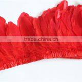 Red Goose Feather Trimming Ribbon Plumes For Dance Costumes