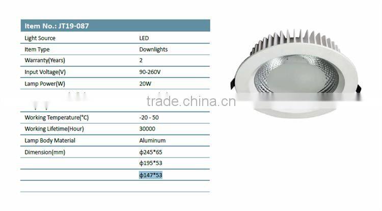 JT19-087 New High Quality High Power Dimmable 20W Cob Led Downlight