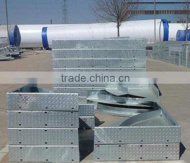 Cable trays have a similar purpose to feeder brackets. A cable tray can be run vertically the whole way up the structure; however it is more commonly used to support and secure cables from the lower part of the structure horizontally to the equipment shelter.