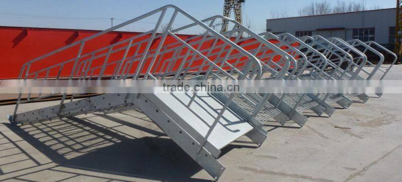 Generally light duty towers ave external ladders or ladders are built in the face while heavy duty towers and guyed masts have internal ladders. Poles usually are fitted with step bolts, but a ladder can be supplied if preferred.