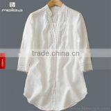 Ladies'cotton White Blouse Long Sleeve With Lace Ornament Top