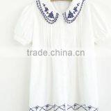 Ladies Cotton White Shirt Embroidery Two Layer Collar Short Sleeve Blouse