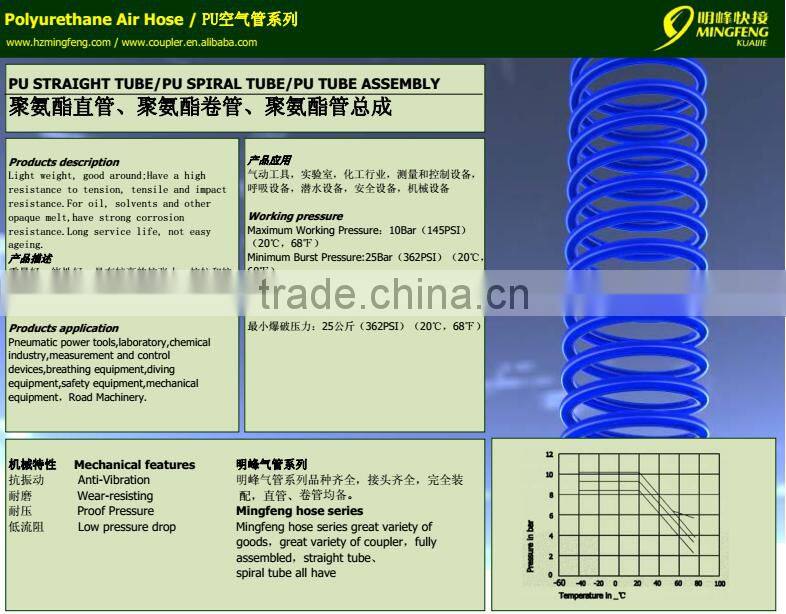 Hangzhou Mingfeng Manufacturing and Trading Co., Ltd. is located in Hangzhou City of Zhejiang Province. Our company specializes in manufacturing and designing quick couplers , PE, PU,PVC air hoses, and other products.