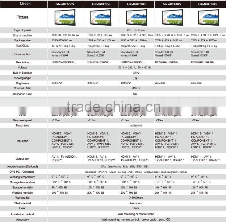 USB(TV)*2,USB(PC)*1, USB(TOUCH)*1,RS232*1 |