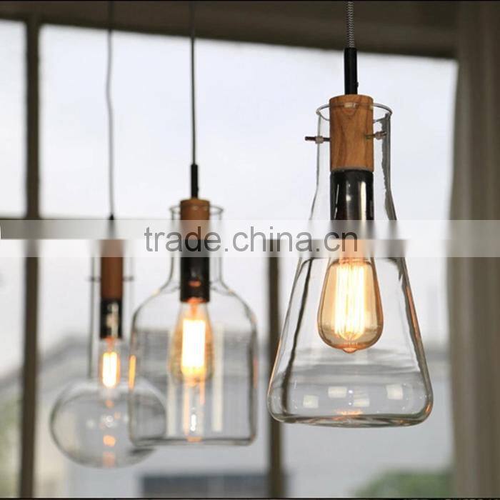 Modern Simple Style Glass Bottle With Wood Pendant Lamp 1 Light for Shops China Supplier