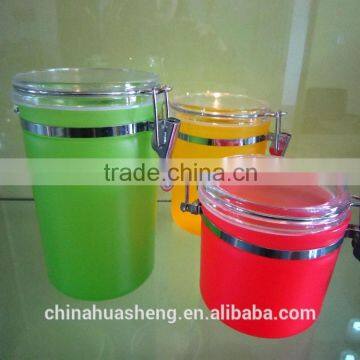 2015 Best Selling plastic candy box airtight canister seal pot with 3 color ASS customer color