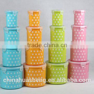 PP Food Grade Round Shape Storage Container Set BPA Free Polka Dot Food Container Lunch Box Set of 4