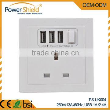 Type G Euro/UK Electrical Wall Mount Switch Socket with 3 USB outlet Ports 230V 13A BSi Standard