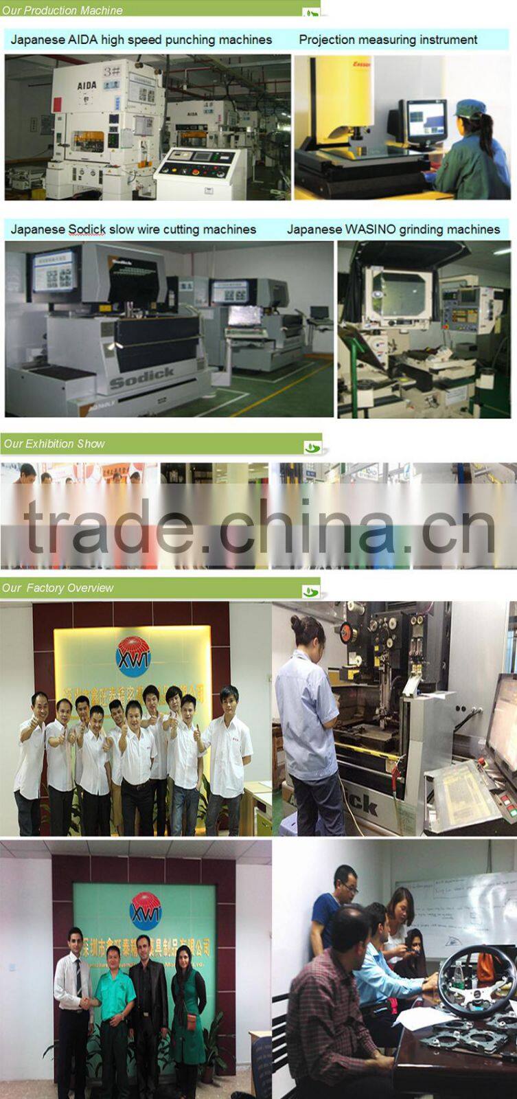 A: Our factory owns a full set of Machining equipment, include large CNC machning center,Sodic EDM machning,import EDM-HS,Radial drilling machines,Milling machines,Grinders,three-D inspection etc.