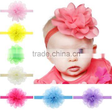 Hot-sales Baby Large Flower Headband Solid Color Chiffon Flower Headband Wh-1793