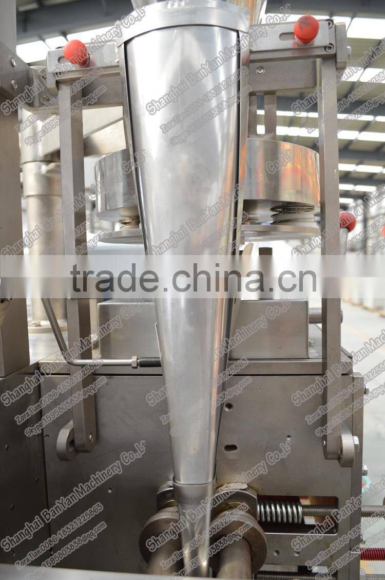 2.The main feature of the machine is one-time packing for the inner and outer bag, avoiding hands directly contacting with stuff materials, improving the efficiency.