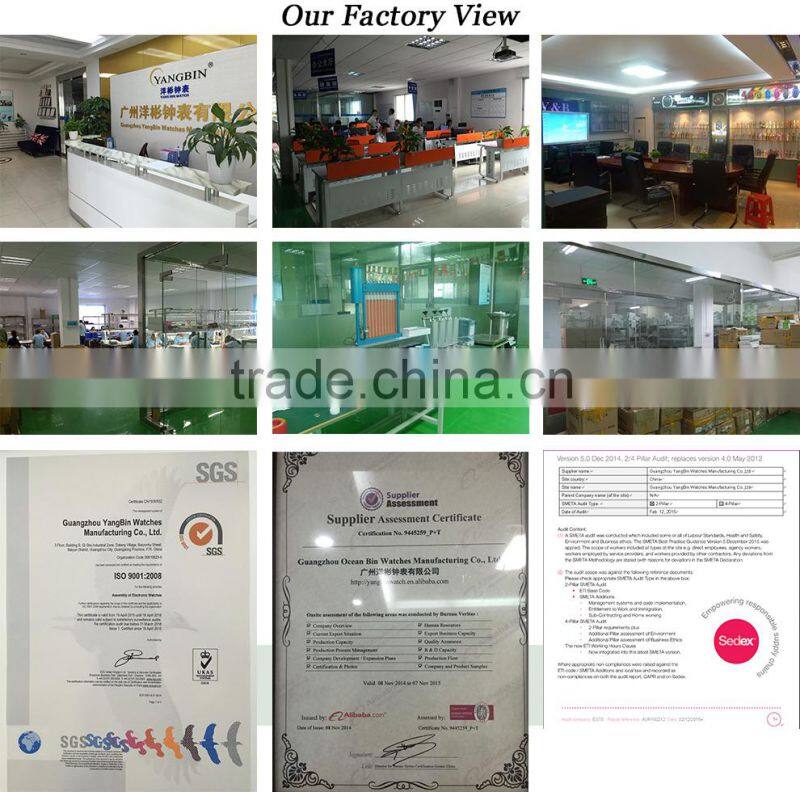 Yangbin Watch Company Start Watch Manufacture since 2001, Factory Area is about 3000M2, Staff more than 100 persons, ISO9001:2008 by SGS, Supplier Assessment by BV,Sedex Certified,ODM/OEM is Welcome,Provide Graphic Design and Engineering Drawing for Confirmation.